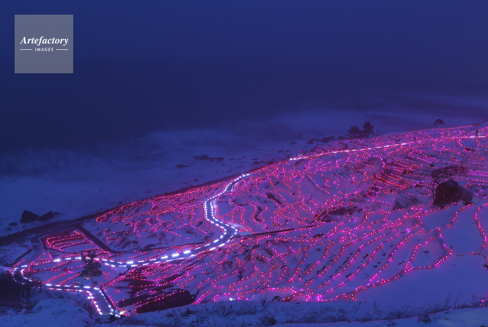 | 作品タイトル | 雪の白米千枚田あぜの万燈 | モデルリリース | なし | |