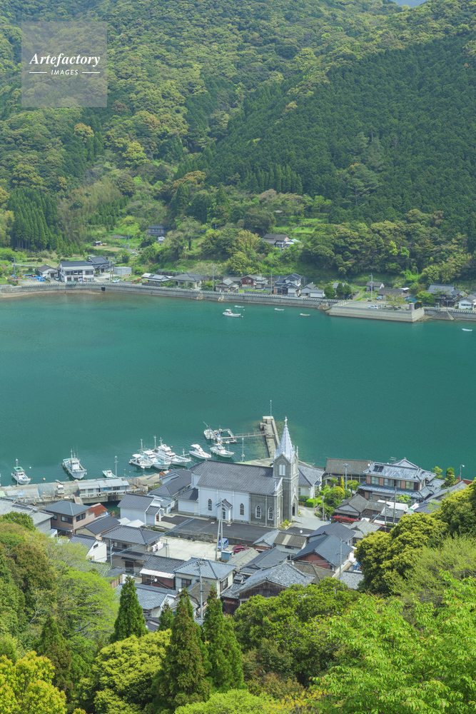 | 作品タイトル | 新緑の崎津天主堂と羊角湾 | モデルリリース | なし | |
