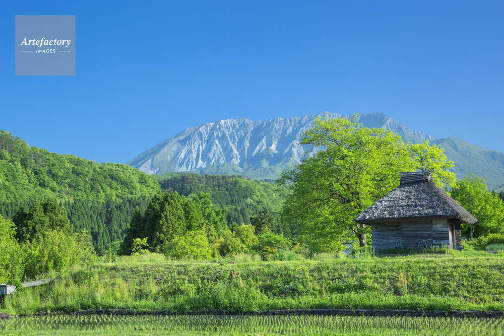 | 作品タイトル | 新緑の大山とカヤブキ小屋 | モデルリリース | なし | |
