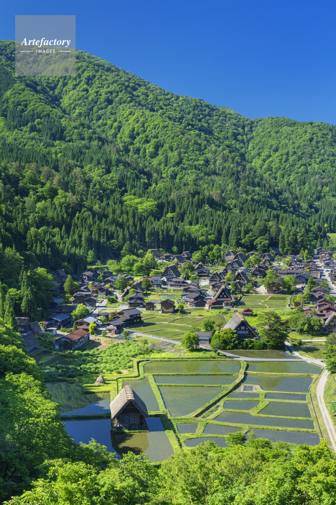 | 作品タイトル | 新緑の白川郷合掌造り集落 | モデルリリース | なし | |