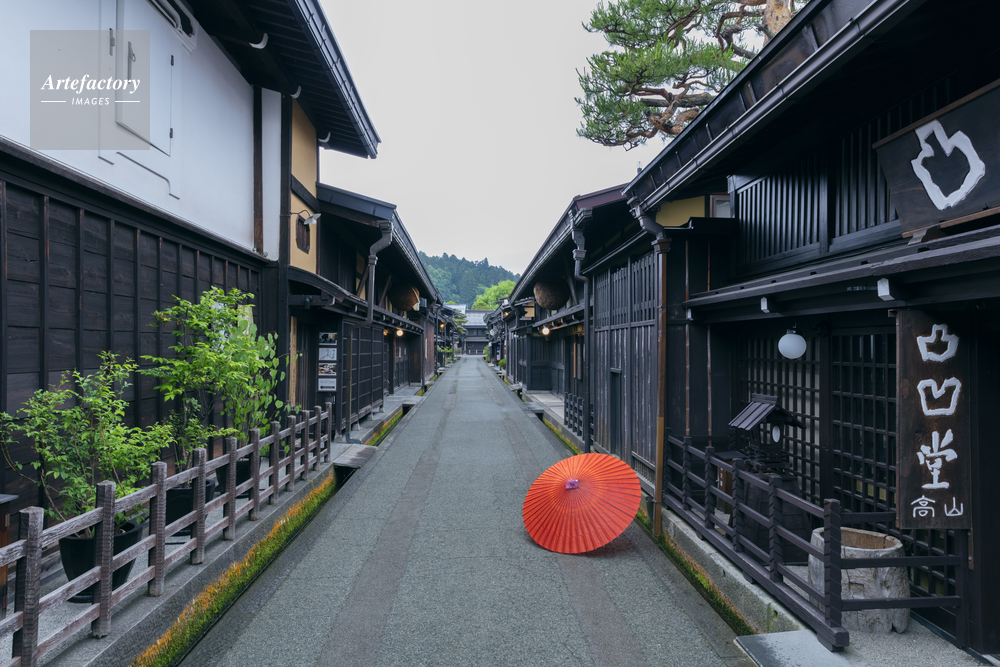| 作品タイトル | 春の高山の古い街並みとカサ | モデルリリース | なし | |