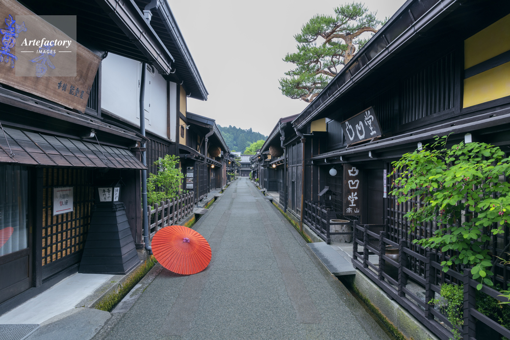 | 作品タイトル | 春の高山の古い街並みとカサ | モデルリリース | なし | |