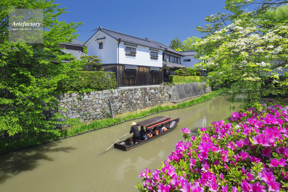 | 作品タイトル | ツツジ咲く八幡掘と遊覧船 | モデルリリース | なし | |