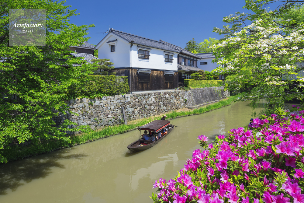 | 作品タイトル | ツツジ咲く八幡掘と遊覧船 | モデルリリース | なし | |
