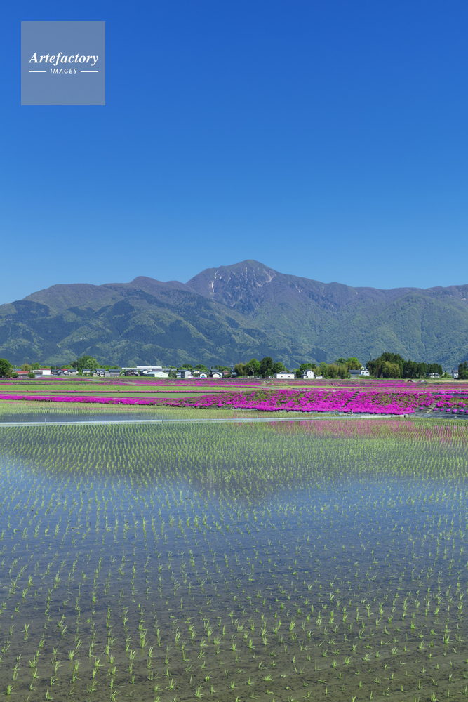 | 作品タイトル | 水田とシバザクラと荒島岳 | モデルリリース | なし | |