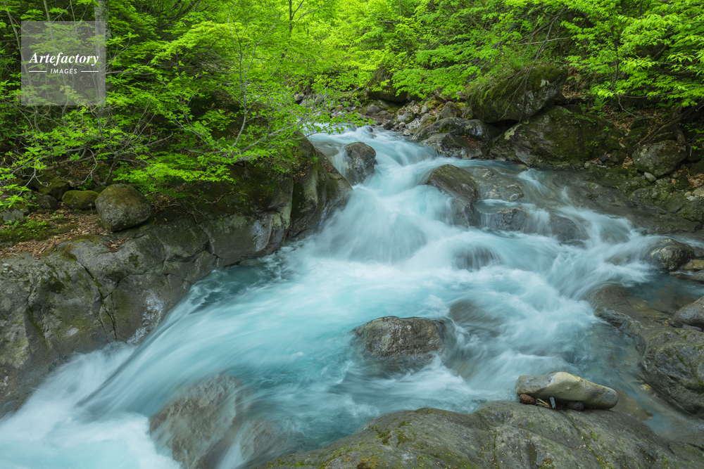| 作品タイトル | 新緑と渓流 | モデルリリース | なし | |