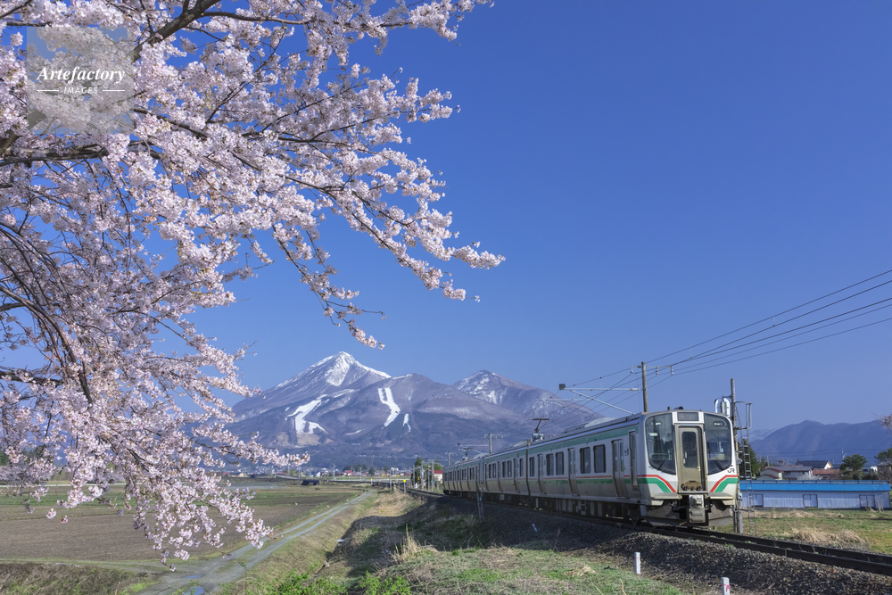 | 作品タイトル | 電車と桜と雪の磐梯山 | モデルリリース | なし | |