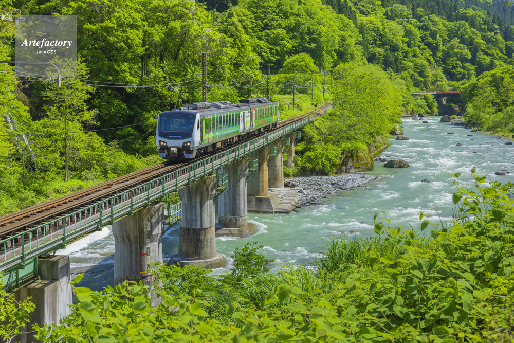 | 作品タイトル | 新緑のJR大糸線と姫川 | モデルリリース | なし | |