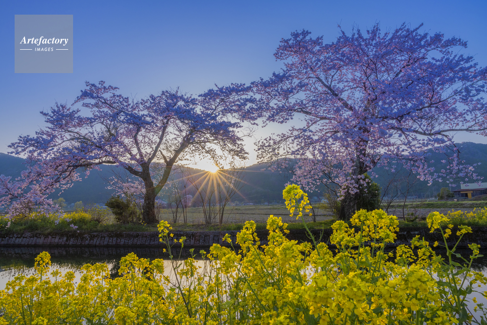 | 作品タイトル | 夕日の余呉湖の桜とナノハナ | モデルリリース | なし | |