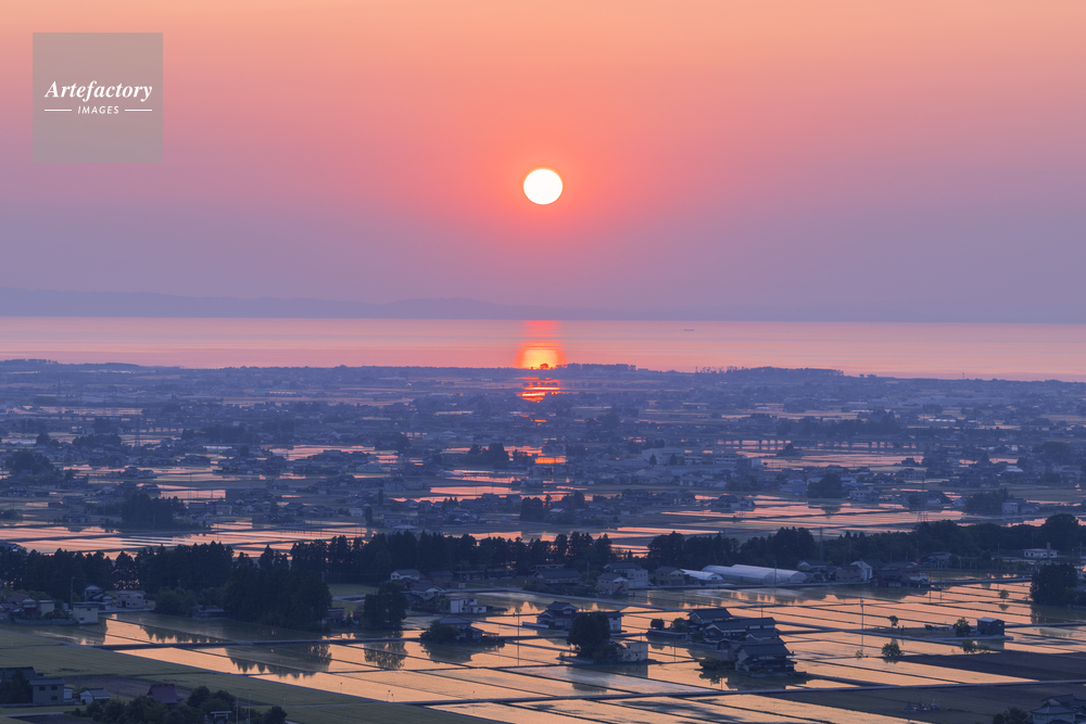 | 作品タイトル | 舟見城址からの水田と夕日 | モデルリリース | なし | |