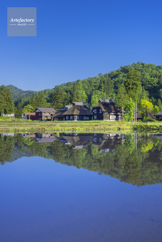 | 作品タイトル | 新緑の荻ノ島かやぶきの里と水田 | モデルリリース | なし | |