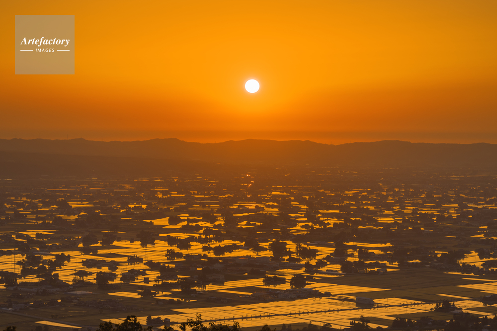 | 作品タイトル | 夕日に染まる散居村の水田 | モデルリリース | なし | |