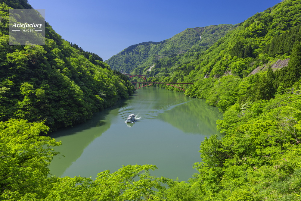 | 作品タイトル | 新緑の庄川峡と観光船 | モデルリリース | なし | |