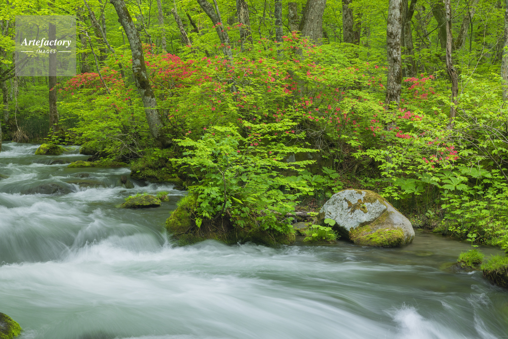 | 作品タイトル | ツツジ咲く新緑の奥入瀬渓流 | モデルリリース | なし | |