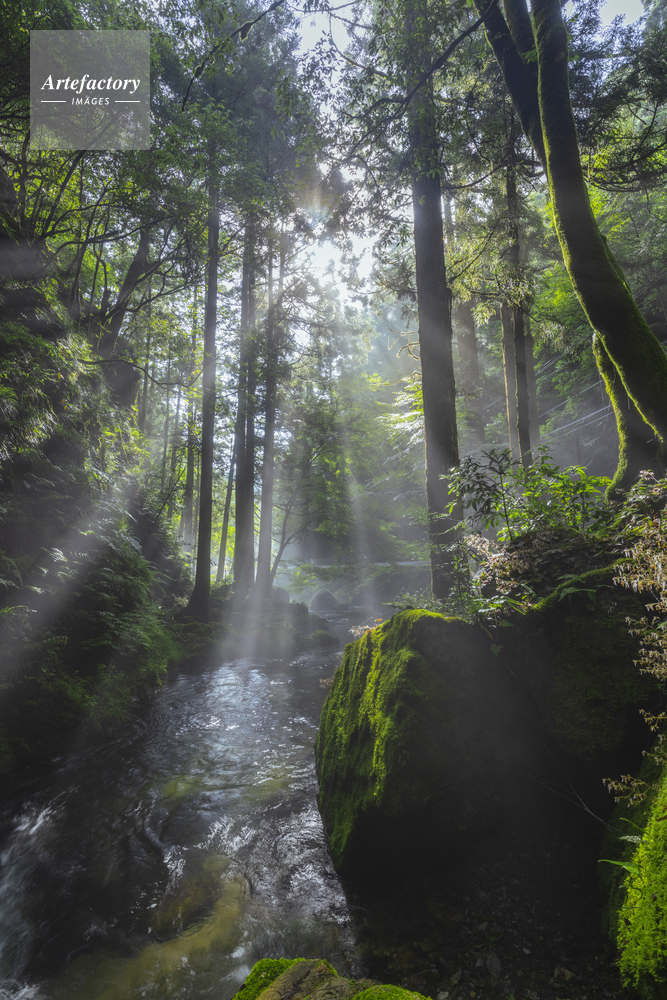| 作品タイトル | 朝日と光芒の醒井峡谷 | モデルリリース | なし | |