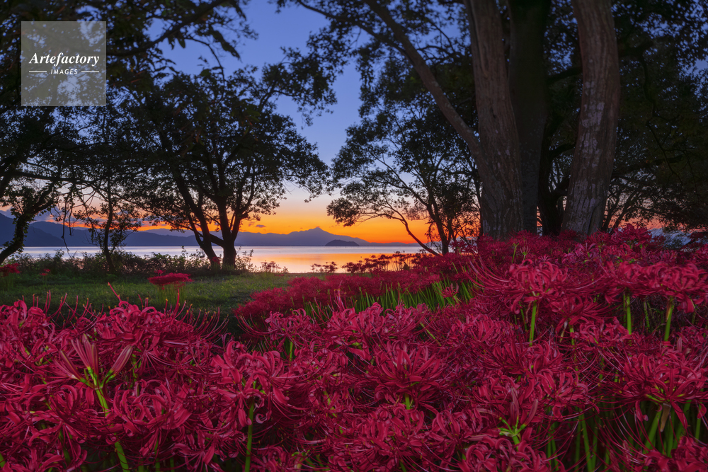 | 作品タイトル | 朝焼けの伊吹山と竹生島とヒガンバナ | モデルリリース | なし | |