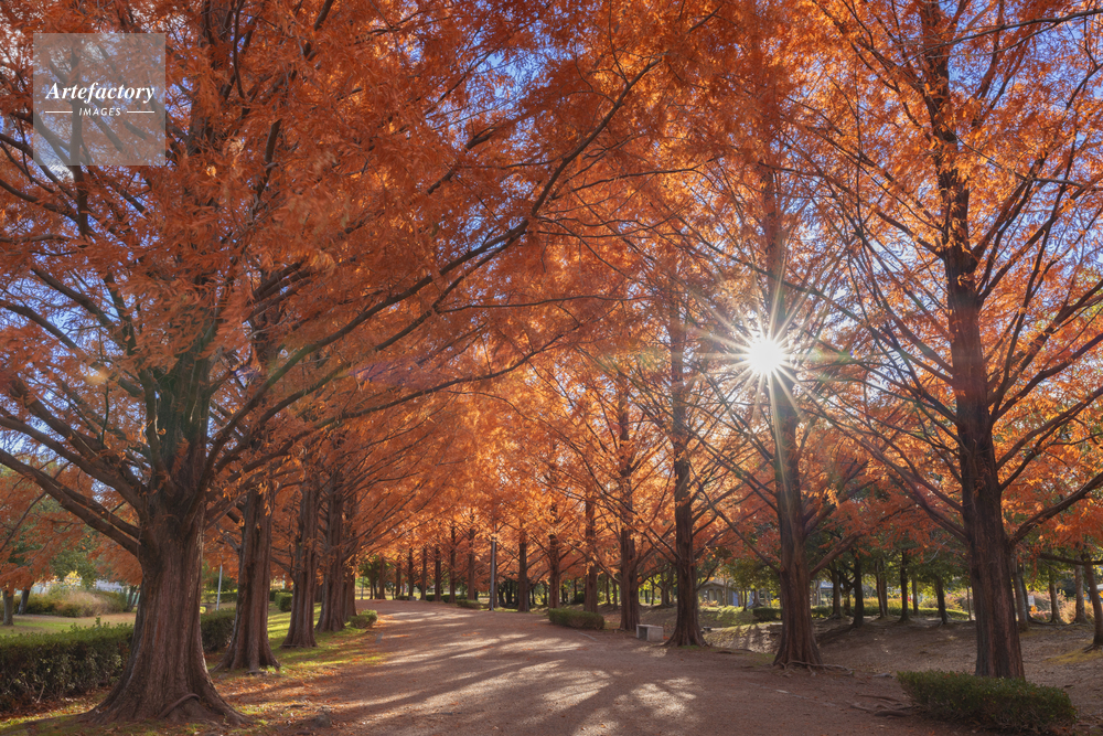 | 作品タイトル | 夕日に染まるメタセコイア並木 | モデルリリース | なし | |