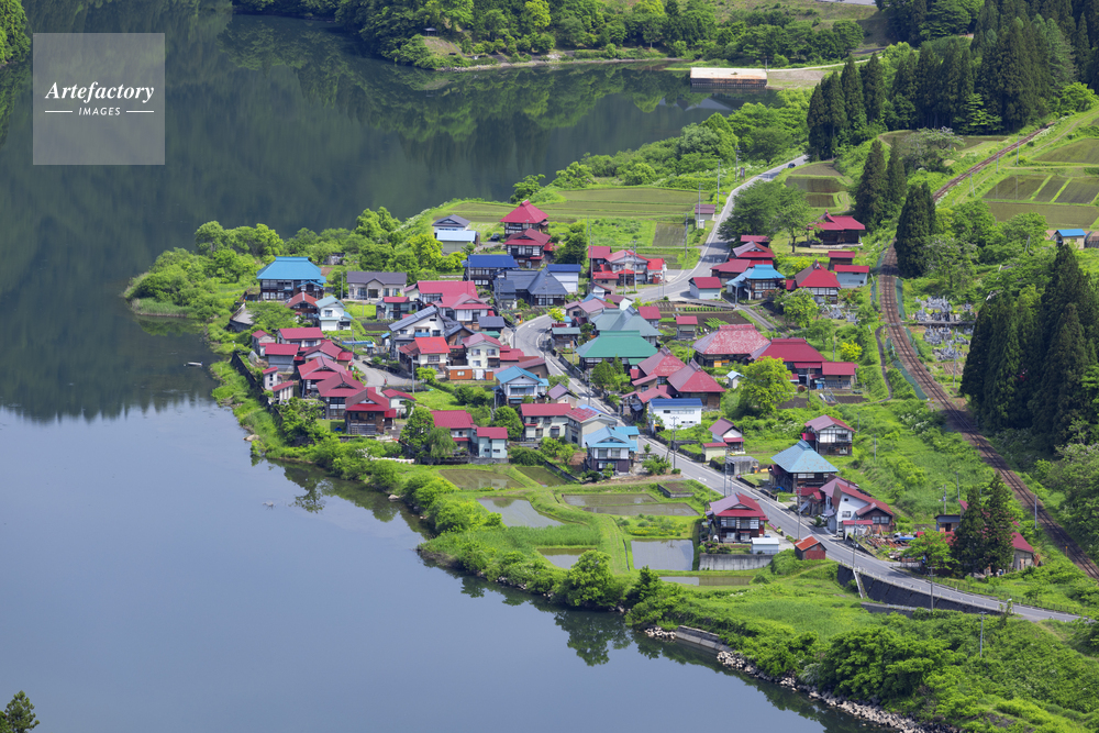 | 作品タイトル | 新緑の大志集落と只見川 | モデルリリース | なし | |
