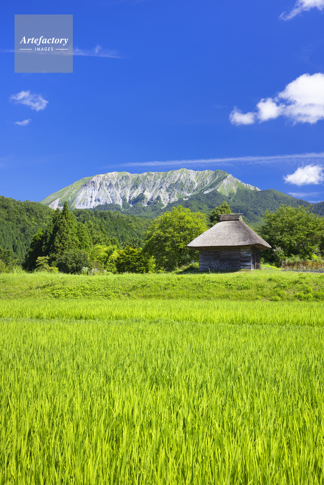 | 作品タイトル | 夏の大山と茅葺き小屋 | モデルリリース | なし | |