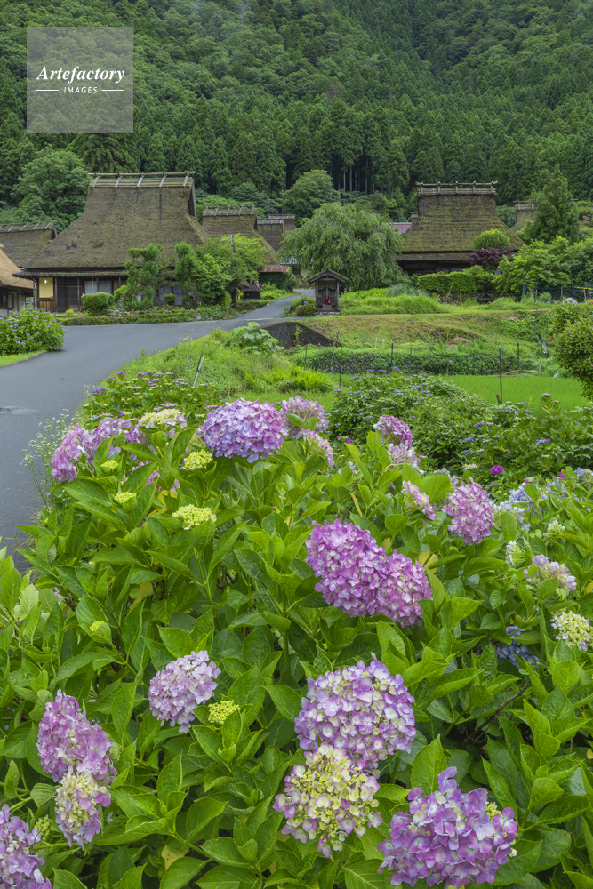 | 作品タイトル | アジサイの花咲く美山かやぶきの里 | モデルリリース | なし | |