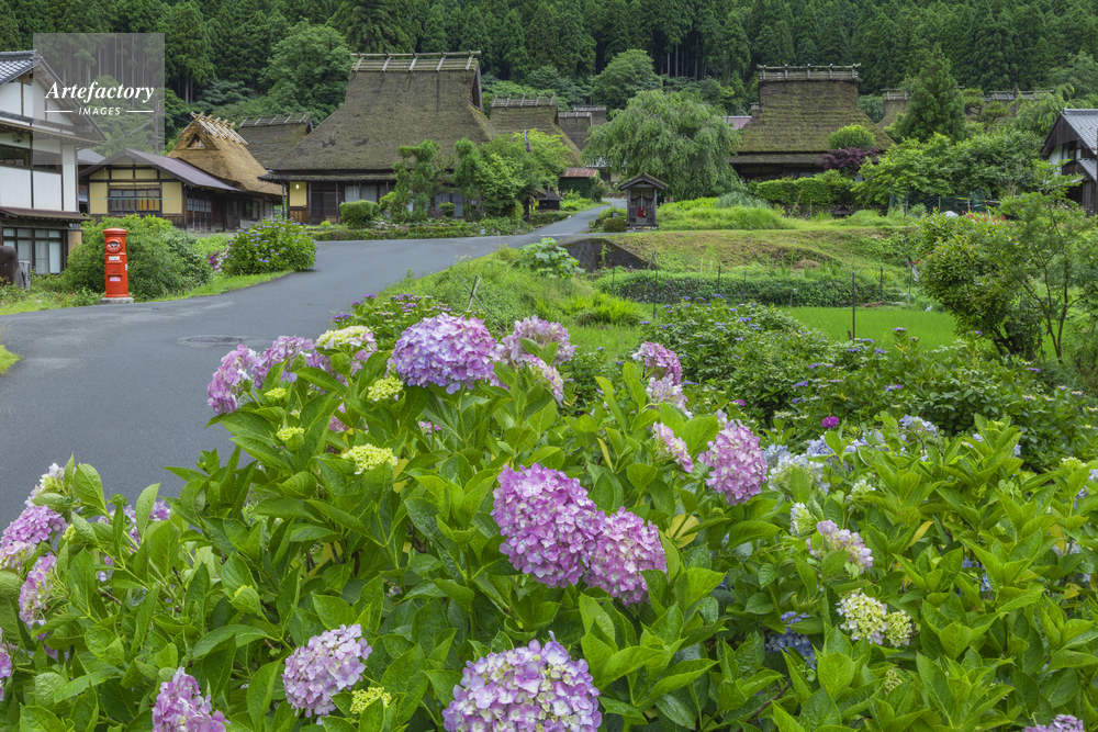 | 作品タイトル | アジサイの花咲く美山かやぶきの里 | モデルリリース | なし | |