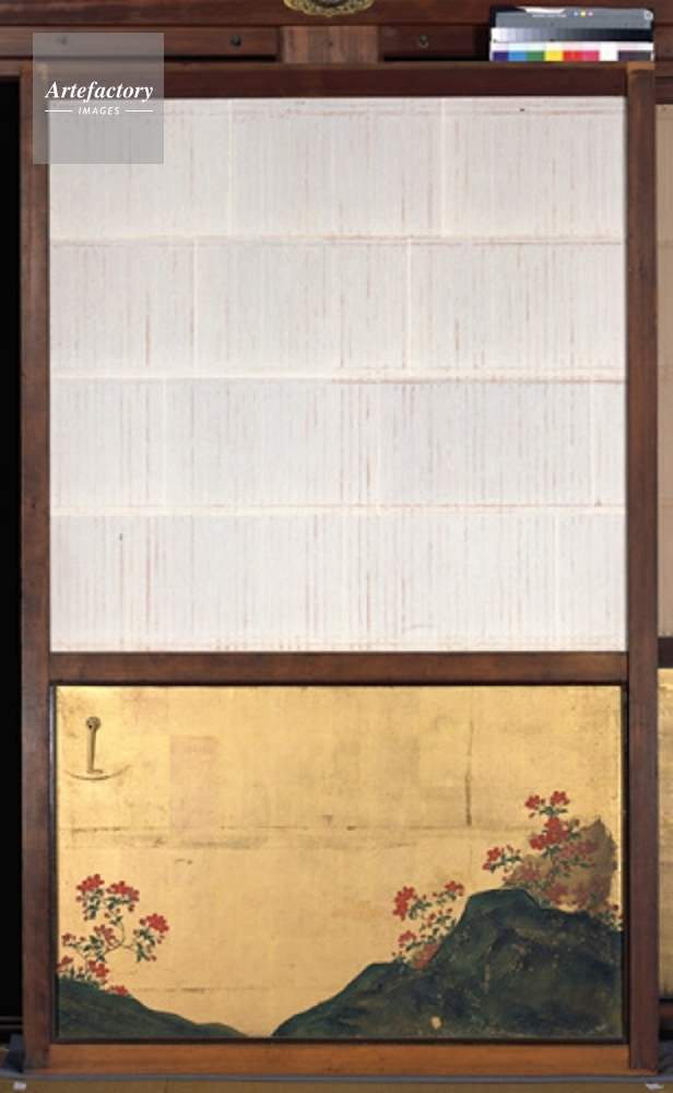 | キャプション | 遠侍,勅使の間(上段),障子腰貼付,北面,東より2,紙本金地著色,重要文化財,二の丸御殿 | 制限事項 | ||