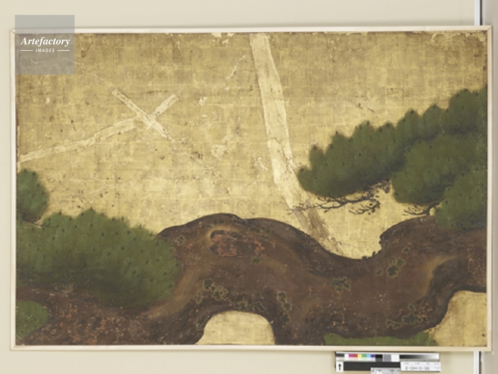 | 作品タイトル | 大広間 三の間 長押上貼付 南面 東より1 紙本金地著色 松孔雀図 重要文化財 | モデルリリース | なし | |