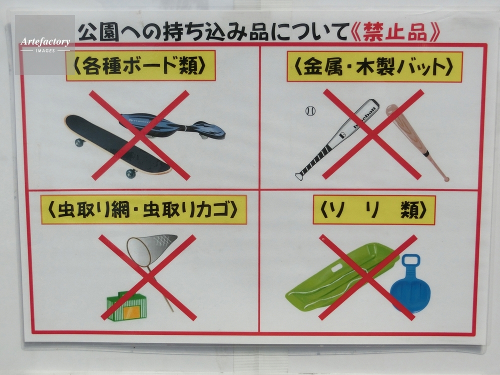 | 作品タイトル | 公園持込禁止品案内板 | モデルリリース | なし | |