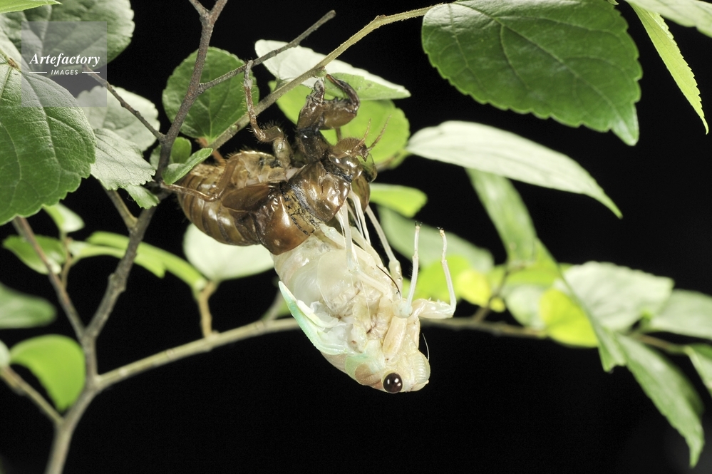 | 作品タイトル | アブラゼミの羽化 09 AM00:47 中足が抜けた | モデルリリース | なし | |