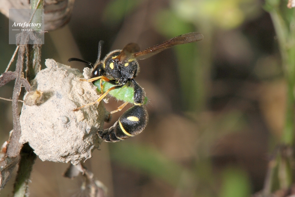 | 作品タイトル | キボシトックリバチがアオムシを巣に入れいる | モデルリリース | なし | |