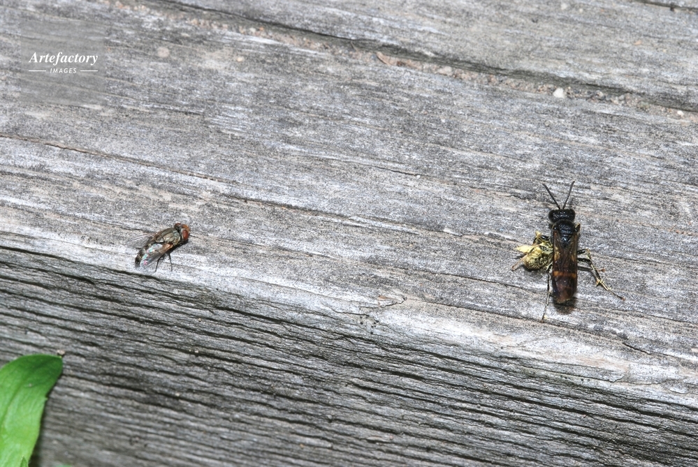 | 作品タイトル | ハナバチを捕らえたツチスガリのあとをつける寄生バエ(左) | モデルリリース | なし | |