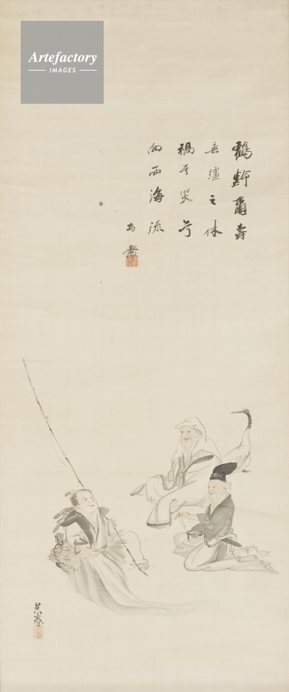 | 作品タイトル | 三老寿図 鶴齢亀寿 無彊之休 禍乎禍乎 向西海流 為需 | モデルリリース | なし | |