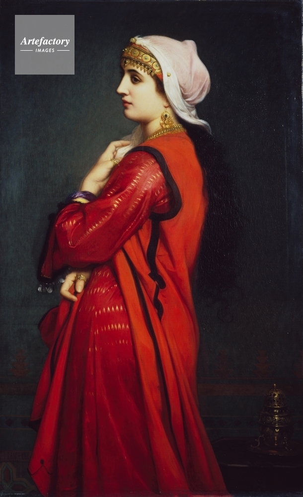 | キャプション | Three-quarter length figure of an Armenian woman with brown eyes and long black hair, wearing a maroon dress flecked with gold and a bright red gown. An incense burner on the right. | 制限事項 | ||