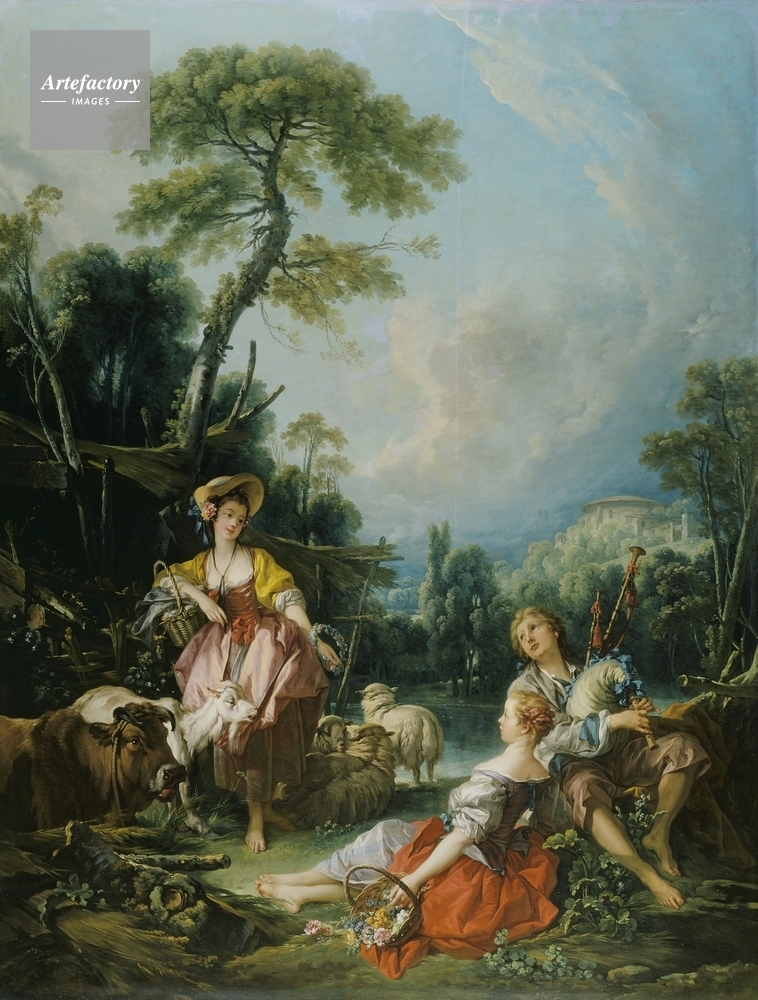 A second shepherdess reclines with a basket