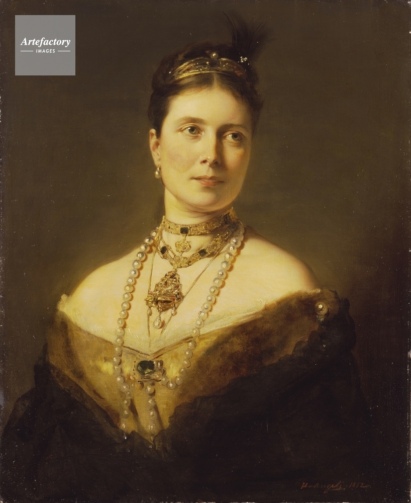 | キャプション | Half length portrait of Victoria Adelaide Mary Louisa (1840-1901), eldest child of Queen Victoria. She wears a parure of diamonds and emeralds, pearls and a golden-yellow dress with black lace shawl. | 制限事項 | ||