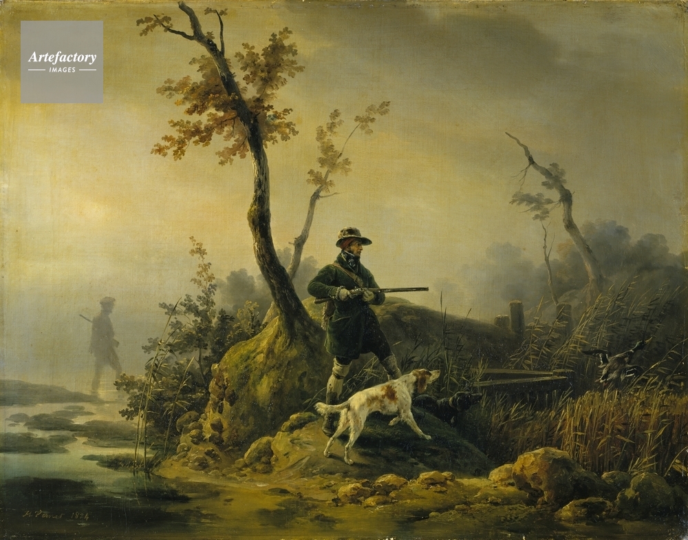 A hunting scene in autumn in a
