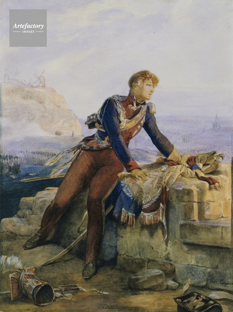 | キャプション | A wounded officer of the Polish Lancers who has helped defend Paris against the Allies looks out over the city. He is in uniform and holds a standard. Montmartre to the left, and perhaps the Palais Bourbon and teh Invalides on the right. See also P685. | 制限事項 | ||