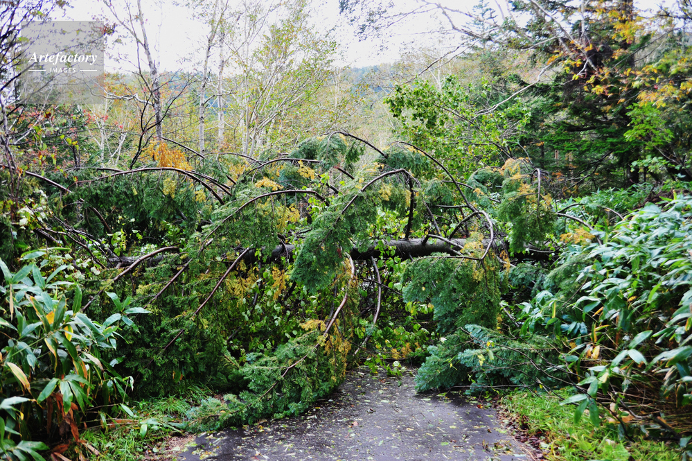 | 作品タイトル | 台風18号により倒れて林道を塞いだ木 | モデルリリース | なし | |