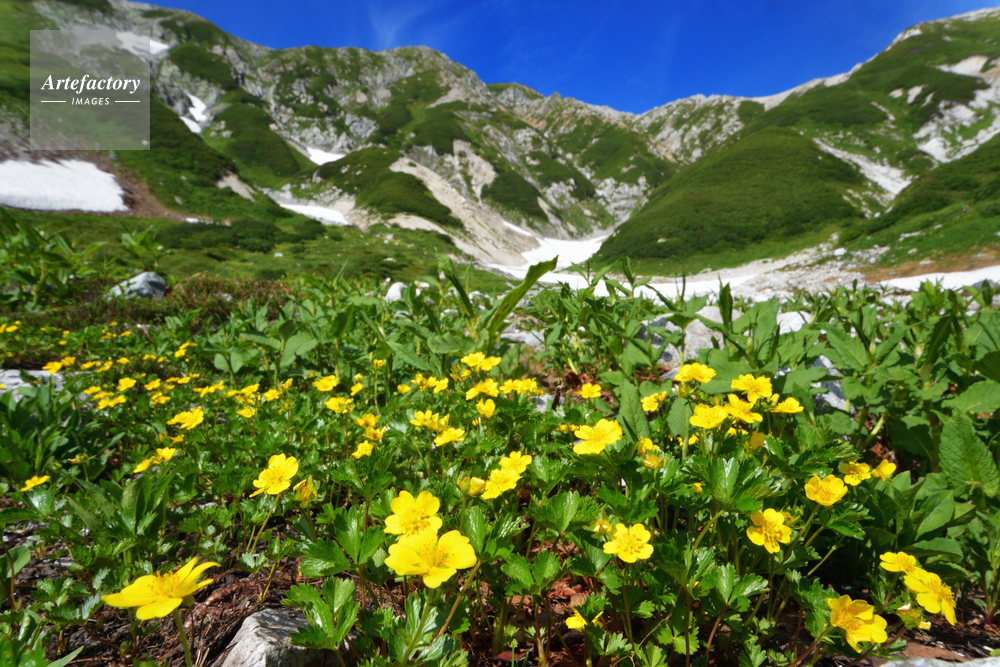| 作品タイトル | ミヤマキンバイ群生と立山・真砂岳〜別山の稜線 | モデルリリース | なし | |
