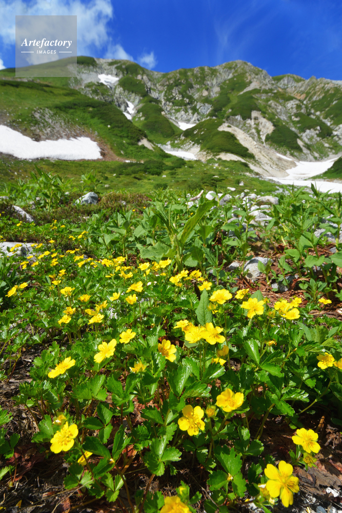 | 作品タイトル | ミヤマキンバイ群生と立山・真砂岳〜別山の稜線 | モデルリリース | なし | |