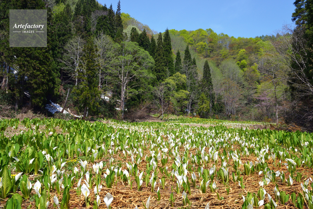 | 作品タイトル | 杉野沢おおほり湿原のミズバショウ群生 | モデルリリース | なし | |