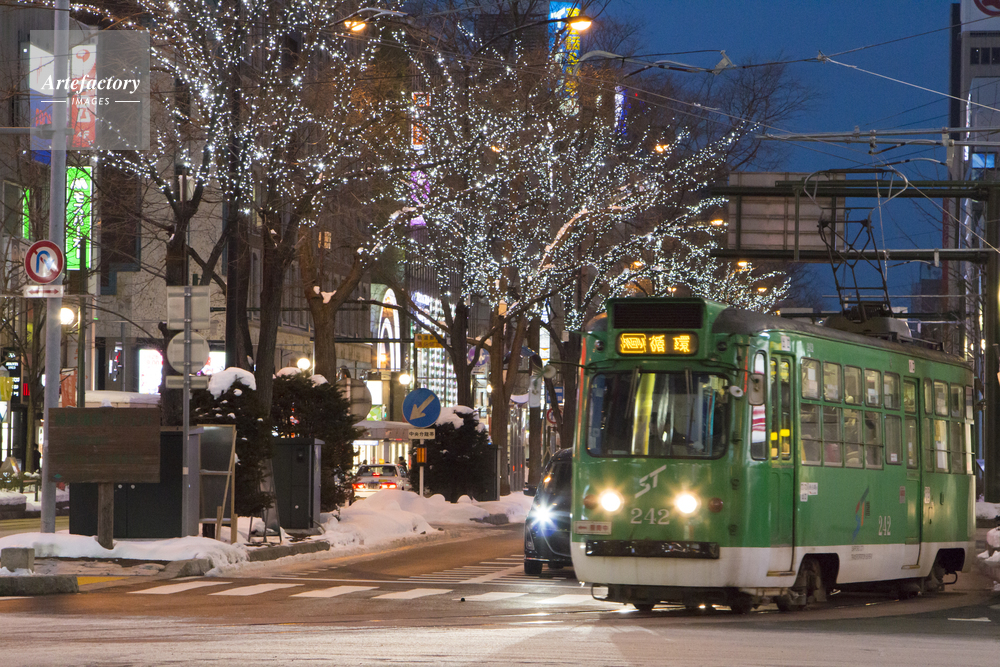 | 作品タイトル | 札幌市電とホワイトイルミネーション駅前通会場 | モデルリリース | なし | |