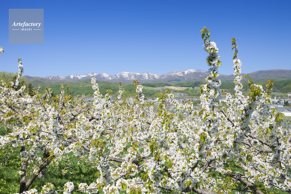 | 作品タイトル | セイヨウミザクラの花咲く仁木町の田園と残雪の山々 | モデルリリース | なし | |