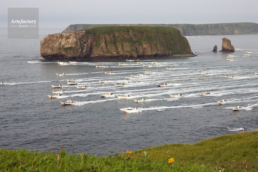 | 作品タイトル | アゼチの岬より望むコンブ漁の出漁風景 | モデルリリース | なし | |