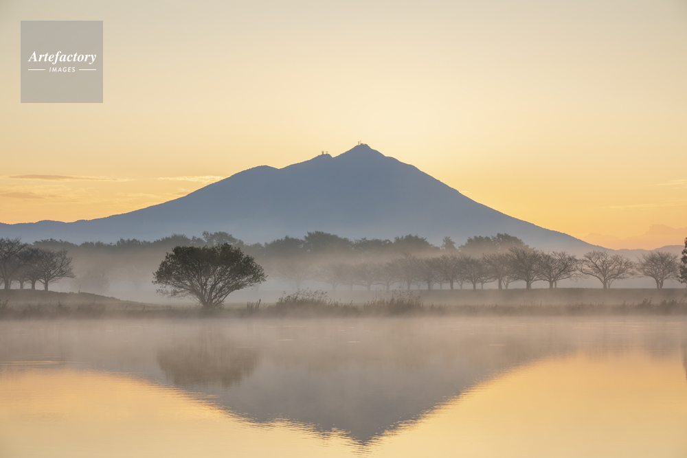 作品タイトル     夜明けの母子島遊水地と筑波山 モデルリリース なし