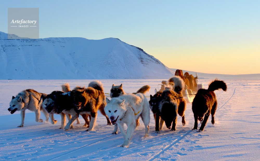 | キャプション | 零下30度のなか、日本の研究者らを乗せたそりをひいて海氷を走るグリーンランド犬たち=2月26日、グリーンランド北西のシオラパルク沖 | 制限事項 | ||