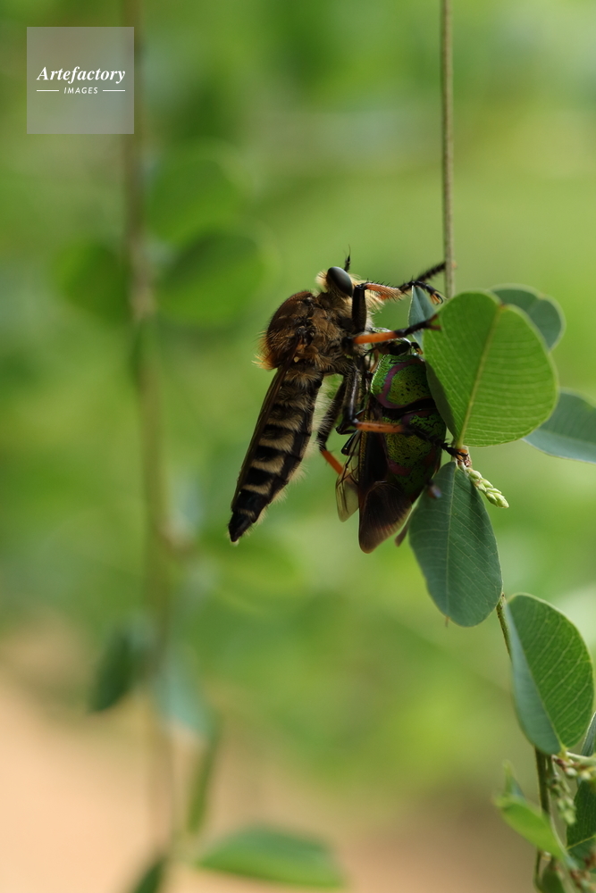 | 作品タイトル | アカスジキンカメムシを捕まえたシオヤアブ | モデルリリース | なし | |