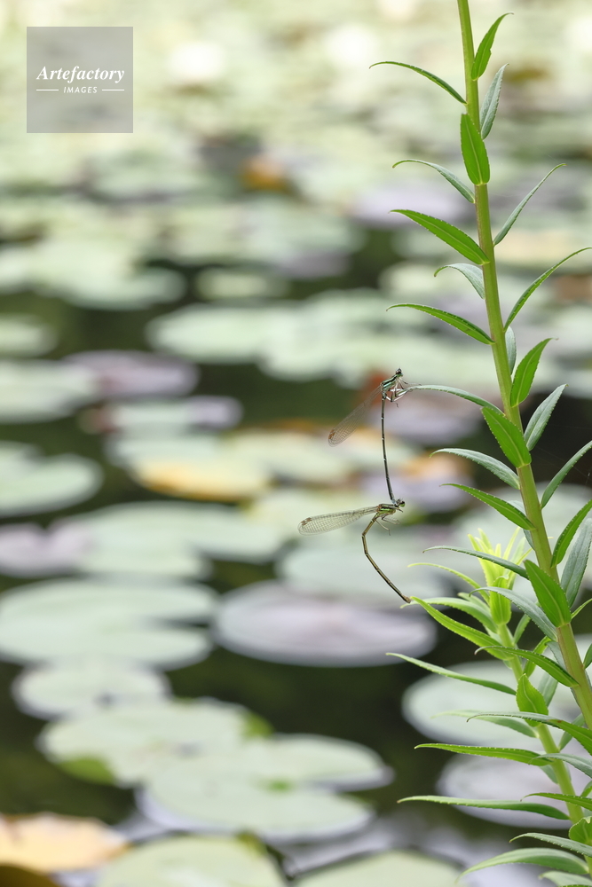 | 作品タイトル | 睡蓮池のほとりの草に止まっている雌雄のモノサシトンボ | モデルリリース | なし | |