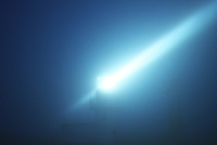 霧の襟裳岬灯台と光の直進性