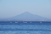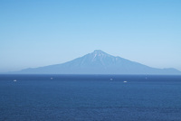 利尻島と漁船と宗谷湾